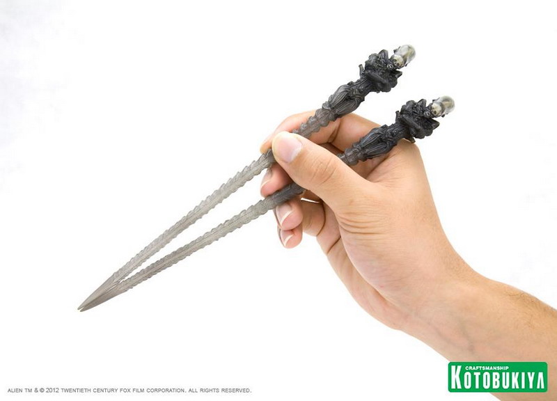 9 inches long with the eating utensil formed from the xenomorph's tail, the ALIEN Chopsticks are fully safety tested and fun for the whole family. Go ahead and slurp your noodles; in space, no one can hear you eat...