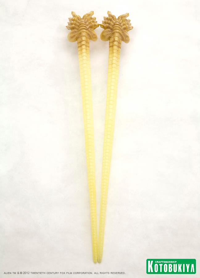 [HR][/HR]After producing innovative chopsticks based on Star Wars lightsabers, historical samurai swords, Neon Genesis Evangelion entry plugs, animals, and dinosaurs, Kotobukiya brings another classic science-fiction franchise into the kitchen with ALIEN Chopsticks: Chest Bursters, Face Huggers, and the full-grown starring xenomorph, Big Chap.