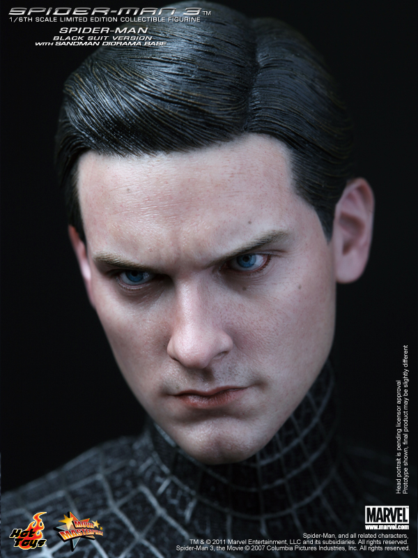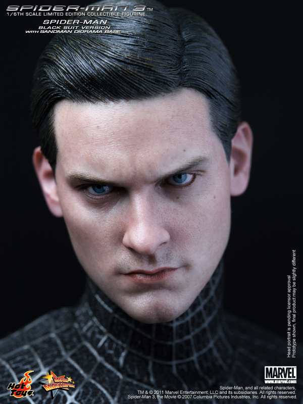 * Authentic and detailed fully realized likeness of Spider-Man in black suit, featuring the likeness of Tobey Maguire as Spiderman / Peter Parker in the Spider-Man 3 movie