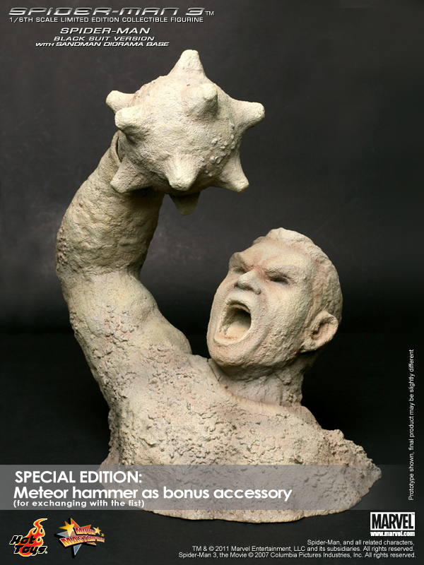 * One (1) meteor hammer as bonus accessory for exchanging with the fist of Sandman in the diorama base