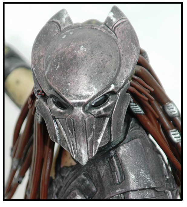 Larger than the 1/6 scale Hot Toys figures but smaller than the 1/4 scale Predator statue, The Falconer Maquette is approximately 1/5 scale and makes for a great display piece for those with a decent-sized shelf, table, or flat space. The sculpting is brilliant with the minute scales of the warrior's skin perfectly captured, the multi-part armor of the hunter's suit exquisitely detailed, and the various interest points - including the bladed gauntlet, the mask, and the leg armor (above, below)- all drawing the eye and attention.