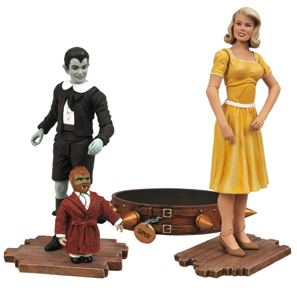 [HR][/HR]DST reveals that Lily and Herman's werewolf son Eddie Munster and his older cousin Marilyn Munster are the next releases in their Munsters action figure line. The two family members will be sharing a two-pack when they hit stores this summer.