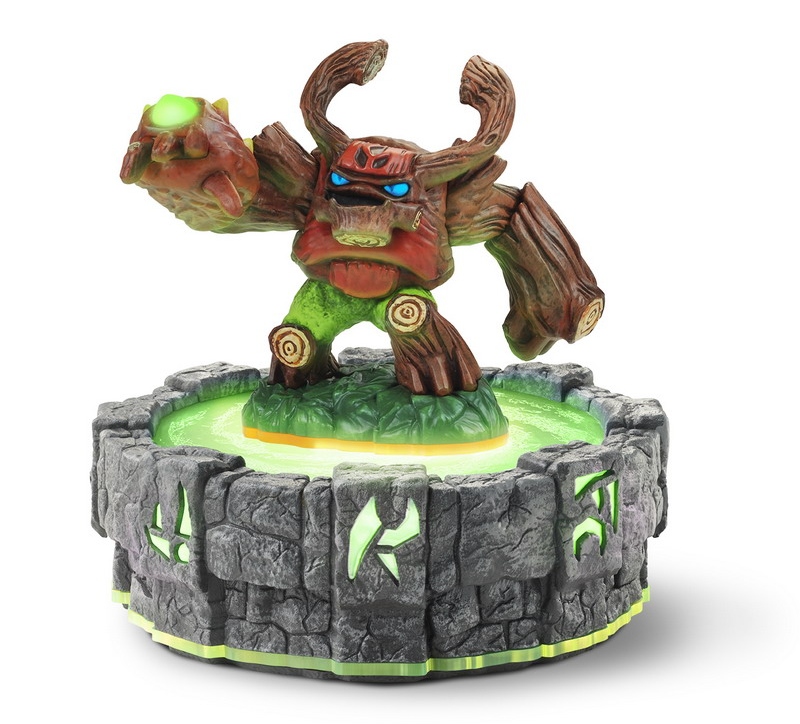 Skylanders Giants introduces twenty (20) new characters, among them eight (8) new super-sized Giants - such as Tree Rex pictured above - with powers to match. These Giant figures, which are twice the size of the main skylanders cast in both physical and virtual form, will feature new lighting technology (batteries are not required) allowing the toy to light up when near or on the Portal of Power. These characters have additional in-game benefits as well. We saw several examples of these benefits in the demo we watched at Toy Fair, the Giant able to access several new areas with its massive strength. One case was a floating island that the Giant was able to pull towards the mainland via a large metal chain and a secret treasure room that the Giant smashed into through the ground.