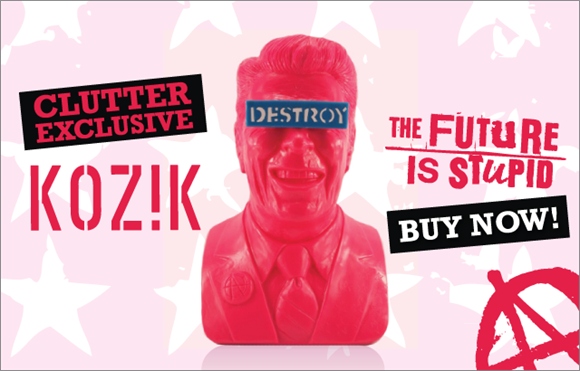 [HR][/HR]Designer toy magazine Clutter has teamed with extreme toy designer Frank Kozik on a new exclusive item: Gipper/Reagan Bust in an exclusive HIGHLIGHER PINK color-way. Part of his series of irreverent busts of 20th century political demagogues, The vinyl bust stands 15" tall and omes complete with removable "Destroy" plaque. The Gipper follows Mao, Stalin, Che and others to get Kozik's "ultraviolence" treatment.