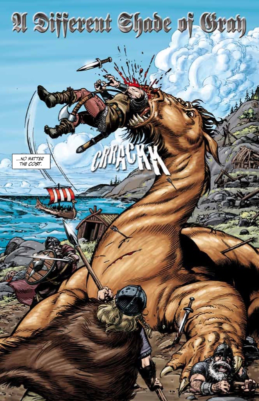 A somewhat comicy tale due to the look of the artwork by Kevin Altieri (inks by George Freeman), Beowulf: A Different Shade of Gray (below) features an interesting morality tale by writer Francis Lombard. Starring the mythical hero of old on an adventure against a frightening monster, this tale - like others before it - forces readers to question who the good guys really are and if what they do is really good...or something else.