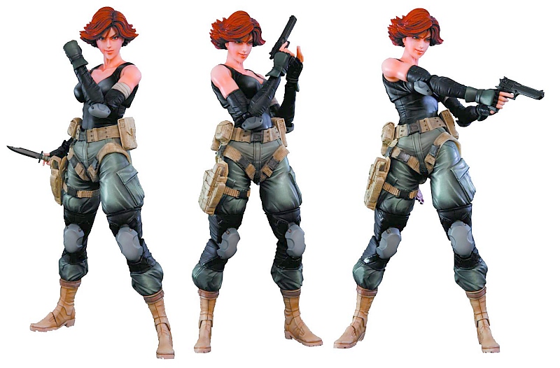 Featured in a larger 10-inch scale, the Meryl Silverburgh Play Arts Kai joins Gray Fox (April release) and Solid Snake (June).