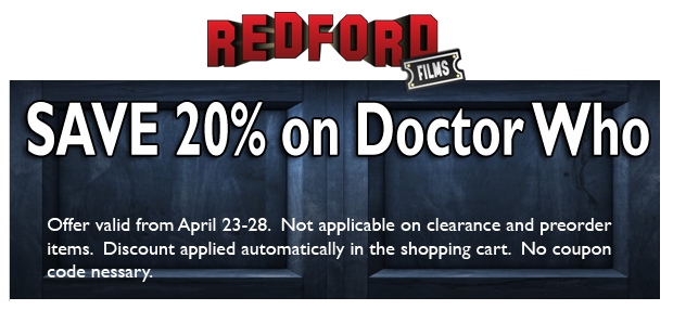 RedfordFilms.com is having a Doctor Who Sale! From now until April 28, save 20% on a wide range of items listed HERE. No coupon code necessary. As always shipping is free on orders over $50!