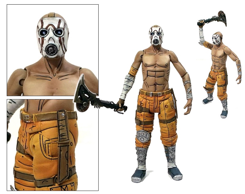 So back to the figures... Was it worth the wait? You bet. The first thing that'll strike you is the phenomenal paint deco on the pair. These figures perfectly capture the cartoony cell shading of Borderlands to a tee. Cartoon figures are nothing new, but usually they are defined by a softer sculpt, not via paint work alone. Sculpt does play a hand in making these figures look as if they stepped out of the game though, a good example being the knife attached to Psycho Bandit's side. It's like a cardboard cutout!