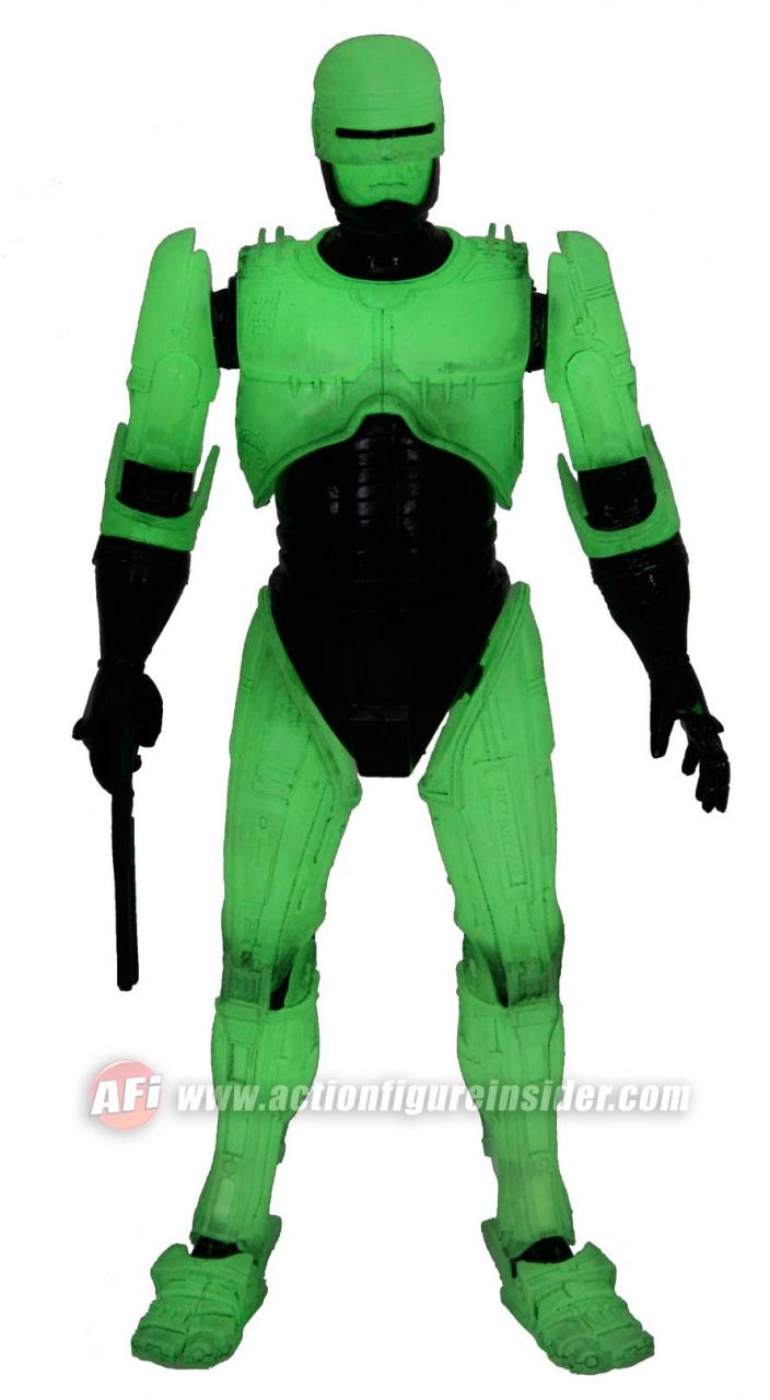 ActionFigureInsider.com has posted an exclusive first look at a new RoboCop action figure from NECA: Night Fighter Robocop. The figure, which is a homage to the old Kenner RoboCop line from the '80s, will feature glow-in-the-dark deco. Look for it exclusively at Toys"R"Us this summer. Also revealed via Night Fighter RoboCop's packaging (see HERE) is news that a "Spring Activated Holster RoboCop" is also planned.