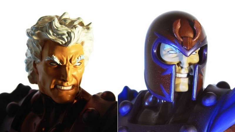 The statue also includes 2 interchangeable heads (helmeted and un-helmeted) which attach magnetically to the neck. The angry facial expression on both of the interchangeable portraits is incredibly detailed and looks as if it jumped right out of a comic book panel. The untamed mane of wind-blown ivory hair on the un-helmeted Magneto head is also rendered flawlessly in three-dimensional form.
