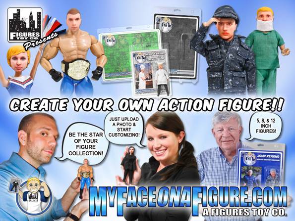 [HR][/HR]Figures Toy Company presents MyFaceonAFigure.com, a new service which specializes in creating action figures that look just like you. Simply upload up to 3 photos of your face (front, right and left side), choose an outfit, and design your packaging for a fully personalized action figure creating experience.
