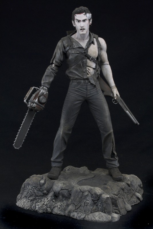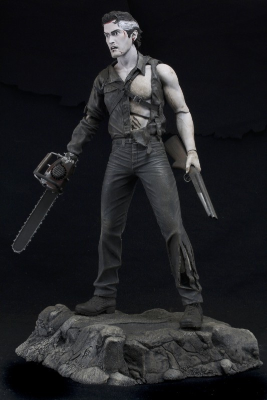 NECA continues to reveal their five San Diego Comic-Con exclusives counting down today with number three: "Hero from the Sky Ash". The 7-inch action figure depicts our chainsaw-handed, sawed-off shotgun toting hero as he appears at the end of Evil Dead 2 after being transported back through time. The figure features a sepia-toned paint job and sandy desert display base.