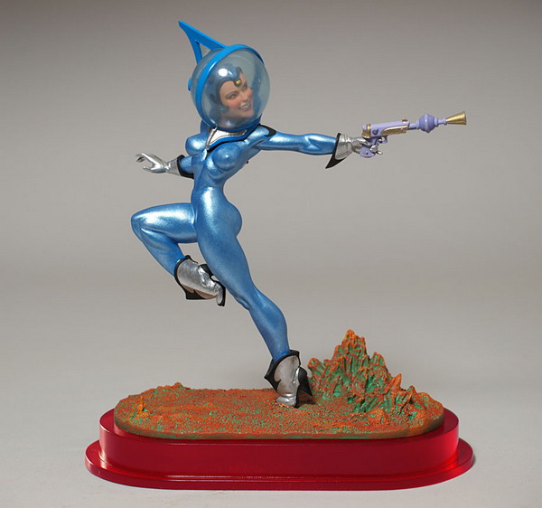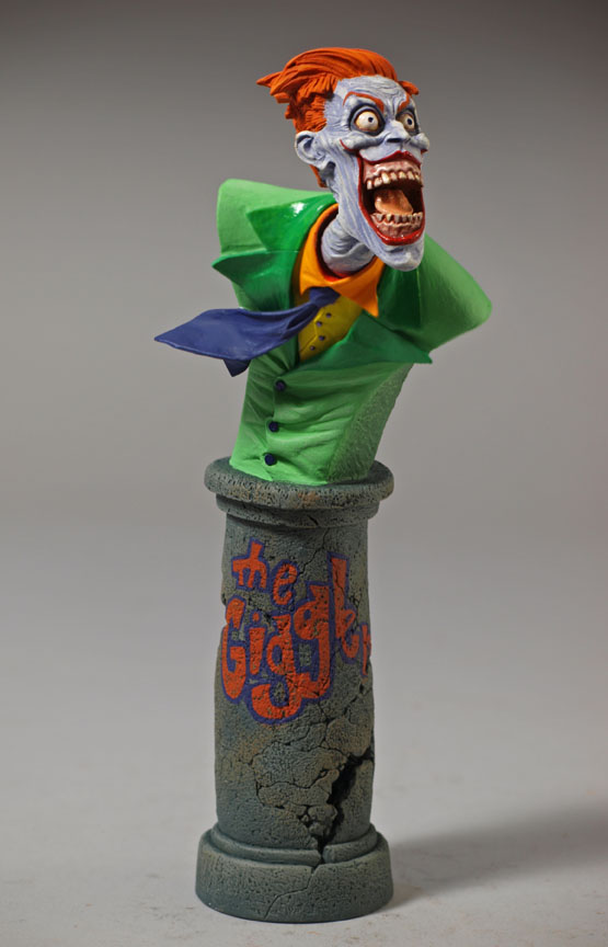 The site launches with three new model kits from Bruckner -- a bust of Quasimodo based on the novel "The Hunchback of Notre Dame," and two different-sized kits of Tim's horrific clown character, the Giggler. New, full-color paint-ups offered in the shop include two new decos of Major Marjorie, Tim's pin-up spacegirl inspired by the art of George Petty, and two decos of Prometheus, the Titan who brought fire to mankind. (Both paint-ups are also available as unpainted resin kits.)