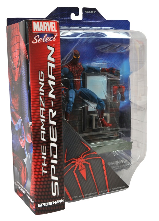 Joining last week's release of the Lizard (see HERE) comes the star of the show, The Amazing Spider-Man. Based on his look from the upcoming motion picture, this approximately 6.5 inches tall Marvel Select action figure features a full range of motion with 16 points of articulation. He even comes with two sets of gloves - fists and web-shooting hands - as well as a wall-mountable display base for true wall crawling action.