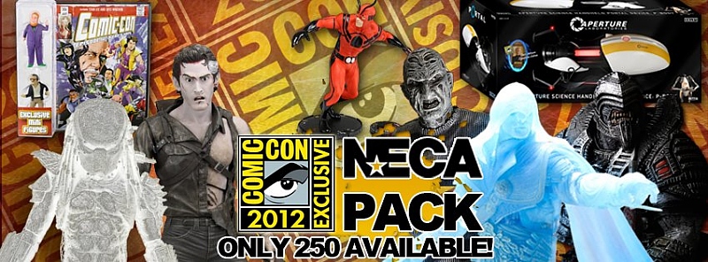 If you want NECA's San Diego Comic-Con Exclusives but can’t get to the show, then this Mega-Bundle is the answer. The bad news is that NECA's 2012 SDCC Exclusives Mega-Bundle is LIMITED TO 250 PIECES, so if you want one, you’re going to have to act pretty quick to get it.