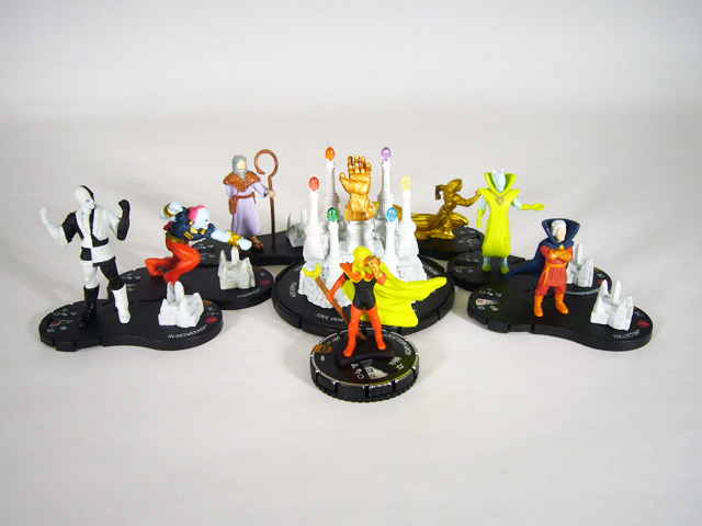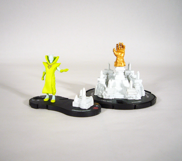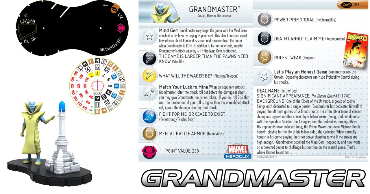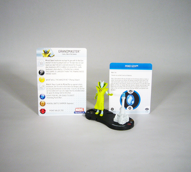 [HR][/HR]HeroClix players everywhere are preparing for the final months of the most intense tournament series ever devised by WizKids: the Infinity Gauntlet! A glove combining the power of the six Infinity Gems, the Gauntlet grants near limitless power to its wielder in the comics... and in HeroClix! Each of the first seven months of the Infinity Gauntlet series gives participating tournament players a piece of the relic (the basic Gauntlet and then one gem per month) and the chance to win an exclusive figure from the classic Infinity Gauntlet storyline. A few weeks ago we took a look at the Collector and Reality Gem from Month 6 (see it HERE), and today we’re excited to reveal July’s Month 7 Grandmaster and Mind Gem!