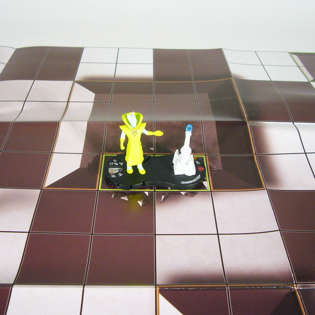 Each Infinity Gauntlet Month 7 kit comes with twenty Mind Gems to be given out as participation prizes and four copies of the Grandmaster figure for 1st place, 2nd place, fellowship winner, and the judge. In addition, this kit comes with the maps you’ll need for the final two tournaments! On one side is the Month 7 Mental Plane, a mind-bending checkerboard battlefield with interspersed hindering and blocking sections (including one that’s already been damaged). The other side is the much-anticipated Shrine to Death where you’ll be competing for Thanos himself in the final month of the tournament series.
