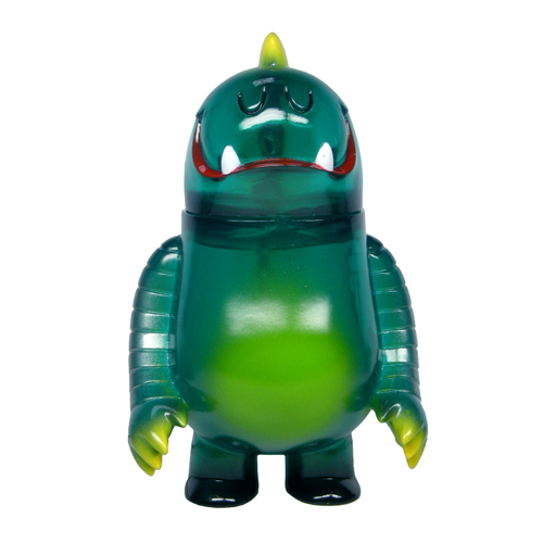 The world’s happiest dinosaur is rendered with exacting care to be authentic to the very last detail of the giant lizards of prehistory. Okay, we may have gotten bad info from wikipedia or something, but we definitely remember someone saying that all dinosaurs were translucent green and 4 inches tall so that’s what we went by. Maybe it isn’t so accurate after all, but that doesn’t make this toy any less sweet! Just take LEROY C to your toy shelf and not the Smithsonian and everything will be fine. Invisible Creature’s dino creation is highlighted with red, white, black, yellow, and green sprays. This two piece vinyl figure is jointed at the neck.