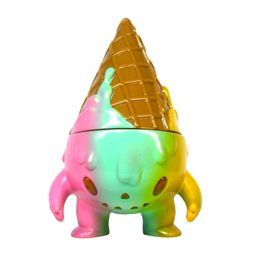 The walking ice-cream cone is now a struttin’ sherbet spire! MILTON is rocking a rainbow of flavors: strawberry, lime, and lemon sprays over a brown vinyl cone. These new Kandy Kaiju characters now come in illustrated header card packaging. A snack-sized 3” tall figure designed by Brian Flynn.