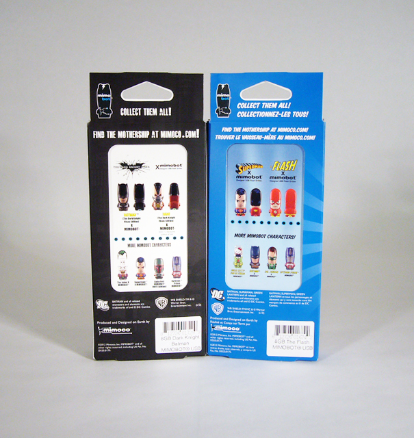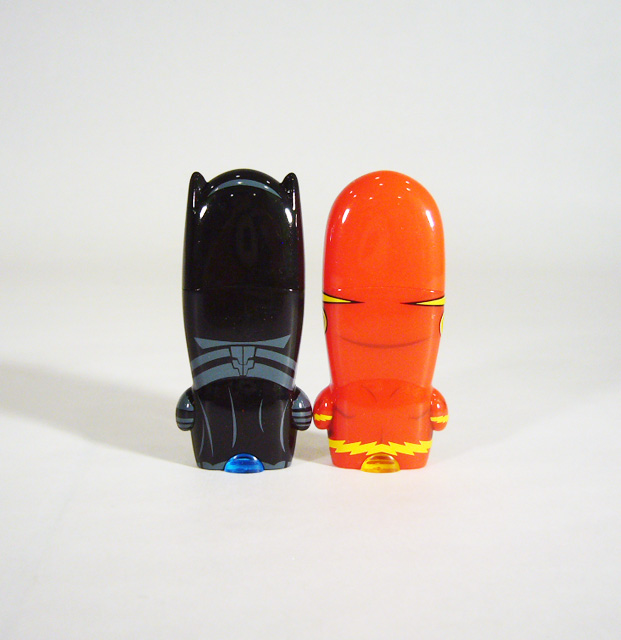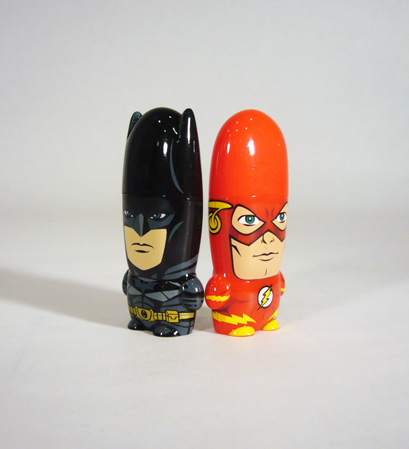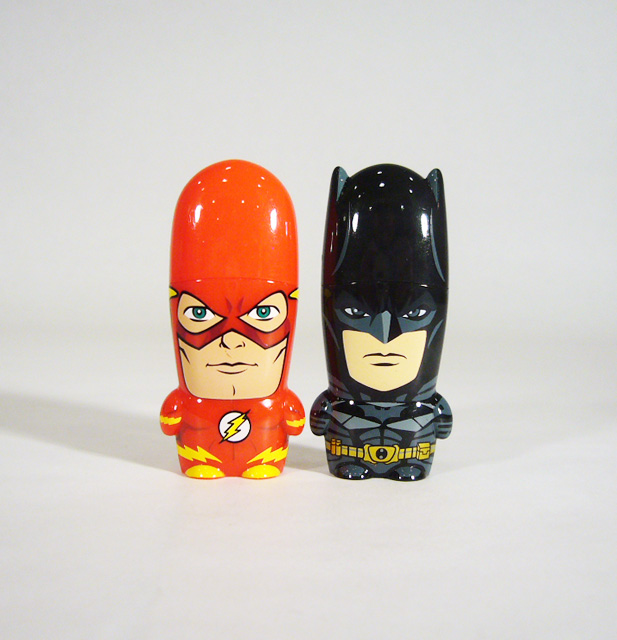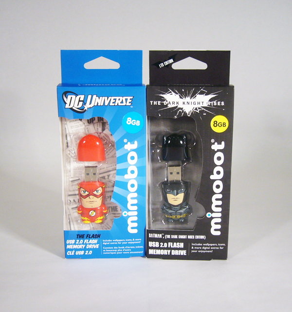 [HR][/HR]What do characters from DC Comics, Transformers, Star Wars, and Hello Kitty have in common? They’re all immortalized in unique USB flash drive form by Mimoco as Mimobots! And after two sets of figures focusing on Batman and Green Lantern (see our reviews HERE and HERE) Mimoco returns to DC with four all new drives. DC Universe celebrates Superman X MIMOBOT and The Flash X MIMOBOT, while from the new film Dark Knight Rises there’s Batman and Bane (See HERE, a San Diego Comic-Con exclusive). Today we’ll be taking a look at one Mimobot from each series: The Flash and Batman DKR!