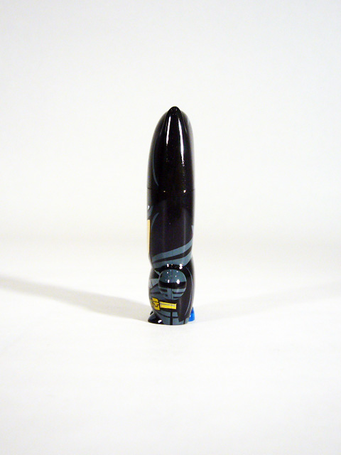 And while Flash is bright and shiny, the Dark Knight Rises’ Batman is somber and dark. Christian Bale’s Bruce Wayne in Christopher Nolan’s films is a gritty, realistic hero with a high tech armored suit equipped with all sorts of cool gadgets. The Batman Mimobot takes this design and shrinks it into a cute little package. The Dark Knight’s gray and black suit has a ton of painted detail with panels along with the Bat symbol on his chest and of course his intricate gold utility belt. Batman’s head utilizes the Mimobot cap with “ears” to represent the Bat ear tips of his cowl. Wayne’s exposed face under said cowl is stern and focused, with his dark eyes peering into the hearts of cowardly criminals.