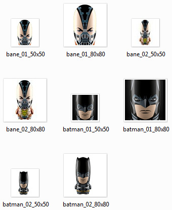 Once you’re done playing with your Mimobots, you can also plug them into your computer! And when you do, you get not only high quality USB drives, but also fun “Mimory” components that let you customize your computer with exclusive DC Universe and Dark Knight Rises content. Each drive comes with content broken down into three categories. Avatars give you images to represent you online (Bane and Batman for DKR, and Flash, Superman, and their logos for DC Universe).