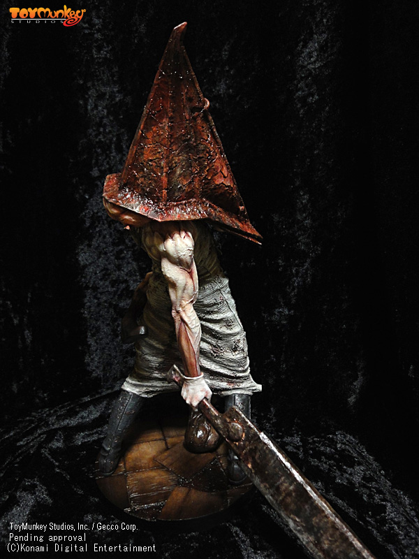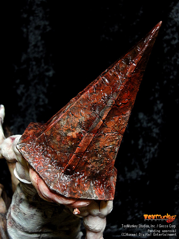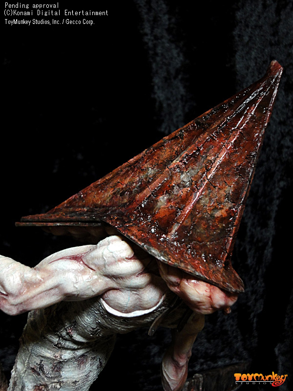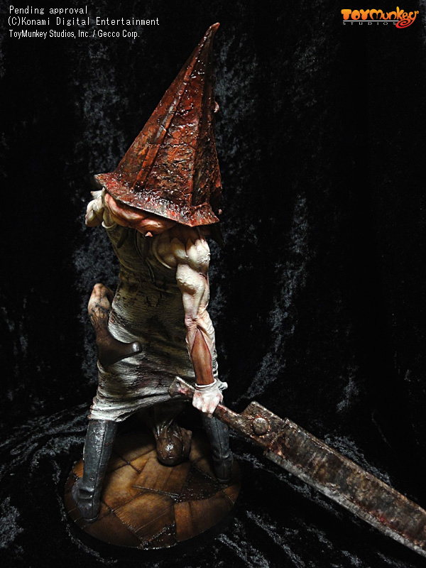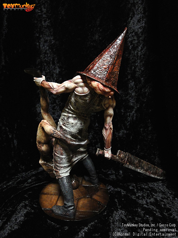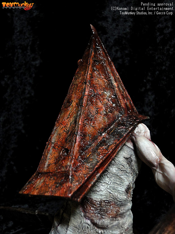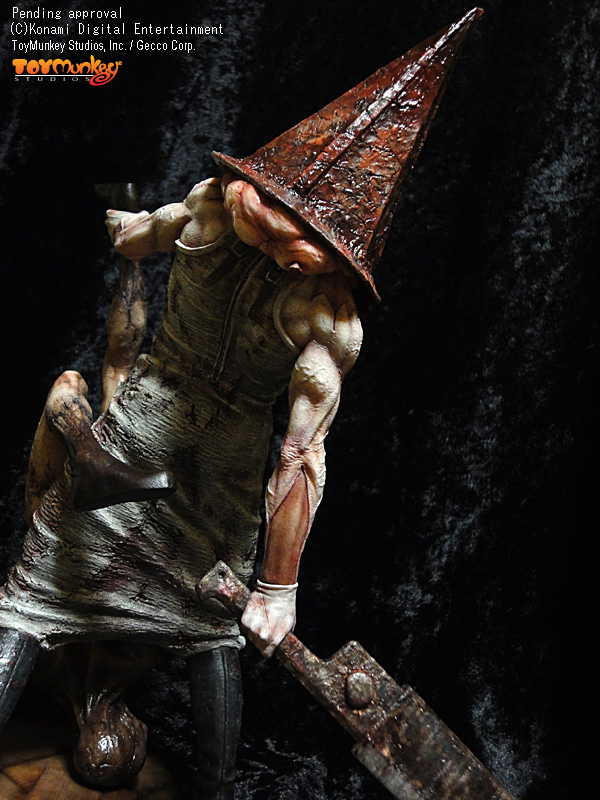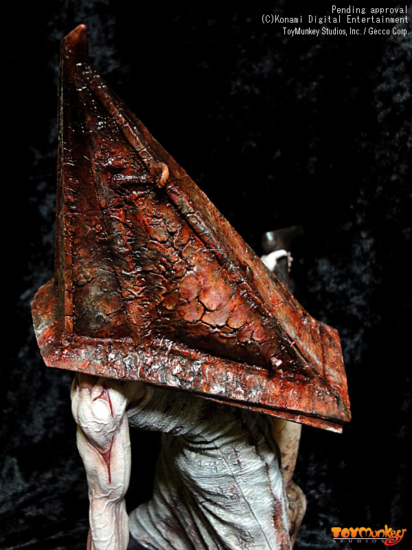 Just recently unveiled at Wonder Festival Japan for the first time, the painted RED PYRAMID THING (RPT, better known simply as "Pyramid Head" to fans) is represented in all his horrific glory! These official pictures of the painted RPT are still PENDING APPROVAL by Licensor and may differ slightly from the final product as the masterful paintwork is complete and is approved. Red Pyramid Thing is slated to arrive this Fall/Winter. Other Silent Hill product will be shown soon.