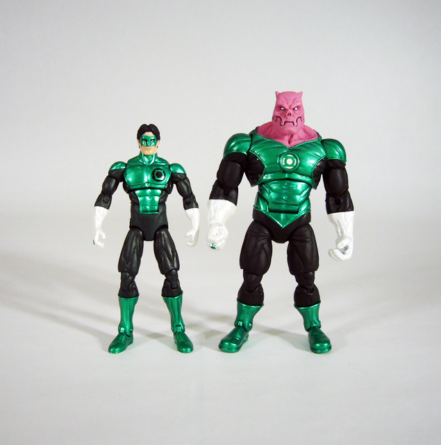 Next up after sculpting, the emphasis on these figures is definitely on articulation. 3 ¾ inch figures can range greatly in the quality and amount of articulation, but the DC Super-Heroes line is definitely off to a good start with these two. They’ve got ball-jointed necks, ball-jointed shoulders, biceps, elbows, forearms at the glove line, torso, ball-jointed hips, double-jointed knees, lower legs at the boot line, and ankles. Kilowog also adds an ab crunch joint to the mix. With all of that articulation the Green Lanterns are very poseable, especially in the arms and upper bodies. The hips are a bit restricted so there’s not a huge range of leg movement, but the number of joints in the lower bodies makes the figures very stable. One potential change that could increase the posing options would be the addition of ball-jointed ankles; this would help especially with wide-legged stances.