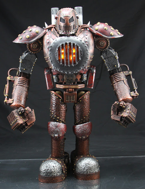 JONATHAN KURISCAK: I actually did a Steampunk Iron Man last year (pictured above - more photos HERE), and it got a great response, so much so that I got few requests to create the figure again. I turned them down because I like to try new things and not keep doing the same thing over again. Keeps this hobby fun! Then I had an email come to me asking if I could recreate the figure, but at a massive 2 foot tall scale. This really intrigued me, so I started this sucka!