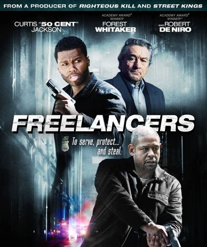 Directed by Jessy Terrero, who's also directed 50 Cent in numerous other films , Freelancers fits the stereotypical cliche cop action drama perfectly. 50 Cent plays rookie Officer Malo, the son of a deceased NYPD officer who joins the force and finds himself assigned to work with his father's former partner, Sarcone (DeNiro). Sarcone is a dirty cop with a dirty agenda. Determined to see his former partner's son become one of his cronies, Sarcone assigns Malo with LaRue (Whitaker), who works with the rookie to fan the flames of corruption through a battery of trials to test Malo's loyalty. However, when Malo makes a discovery and the truth comes to light about his father's death, revenge is the only thing on the young officer's mind and he won't stop until justice is served.