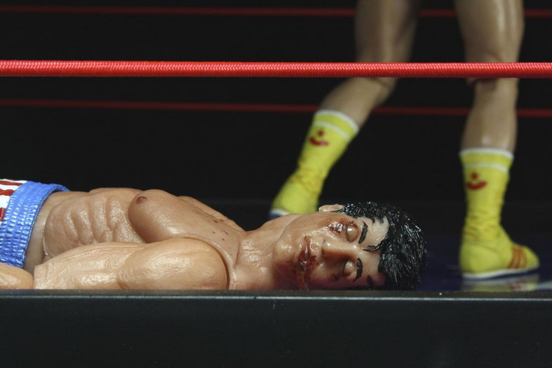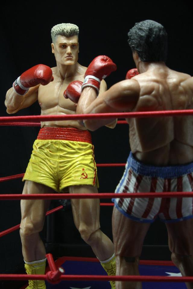 NECA shares new photography showing off their newest assortment of Rocky action figures. Hitting store shelves now, Rocky Series 2 features Rocky Balboa in both "Clean" and "Battle Damaged" (bloody spit included!) versions, and Ivan Drago in two versions as well, in Yellow and Red (damaged) trunks.