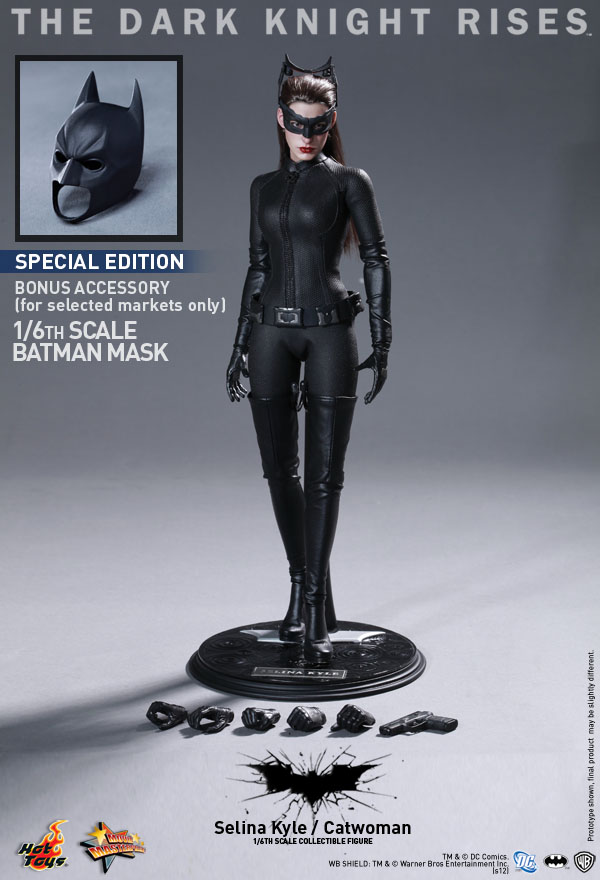 The collectible is specially crafted based on the image of Anne Hathaway as the prominent character Selina Kyle/ Catwoman, highlighting the movie-accurate head sculpt, hair implantation, highly detailed costume and accessories.