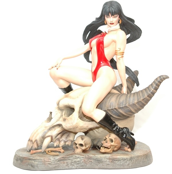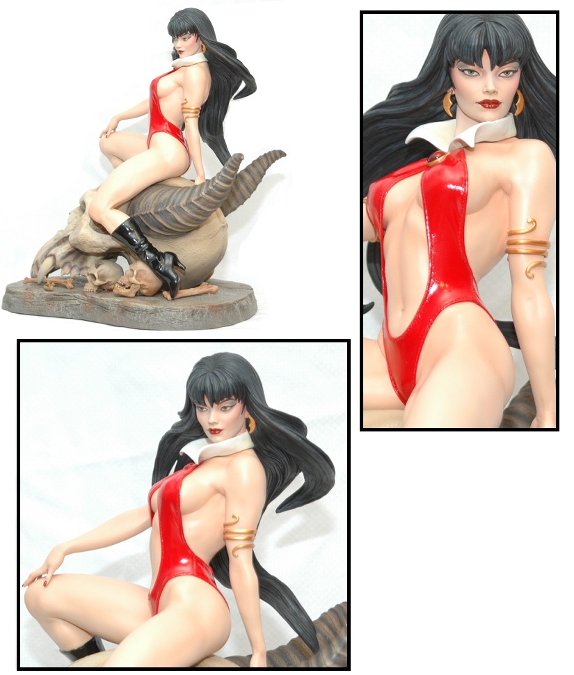 Created in 1/4 scale and measuring 13" high seated atop the dragon's skull base, this statue makes for both an imposing piece and a gorgeous display. At 10" wide and almost 15" long, this Vampirella statue is an impressive and delectable collectible. Even if you've never heard of the character or you're not a fan, it's hard to find this figure unattractive.