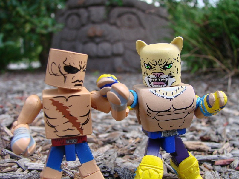 Hot on the heels of Marvel vs. Capcom 3 comes a brand new line of video game-inspired Minimates from Diamond Select Toys: Street Fighter X Tekken. Each SFxT Minimate two-pack pits a Street Fighter superstar against a Tekken legend. DST took SFxT Minimates Series 1 and staged a series of battles in different locales, based on the following two-pack combinations: