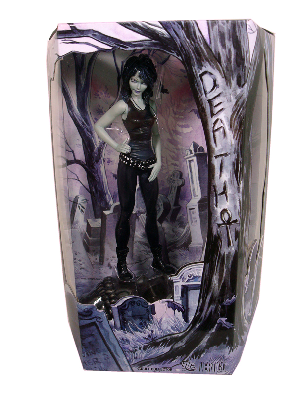 Mattel’s Death figure is more of a statue than an action figure, being dubbed “stactions” by fans, standing at 8 inches tall rather than being in scale with their established DC Universe Classics line. Why it was decided to introduce a new product line and scale is unclear but I’m sure I’m not the only fan that's disappointed Death towers over all of my other figures. It was said in a Q&A that they are trying something new out and if it does well we can expect to see an entire in-scale line of the Endless, but it remains to be seen if the Death figure sales met the expectations needed to produce the line.