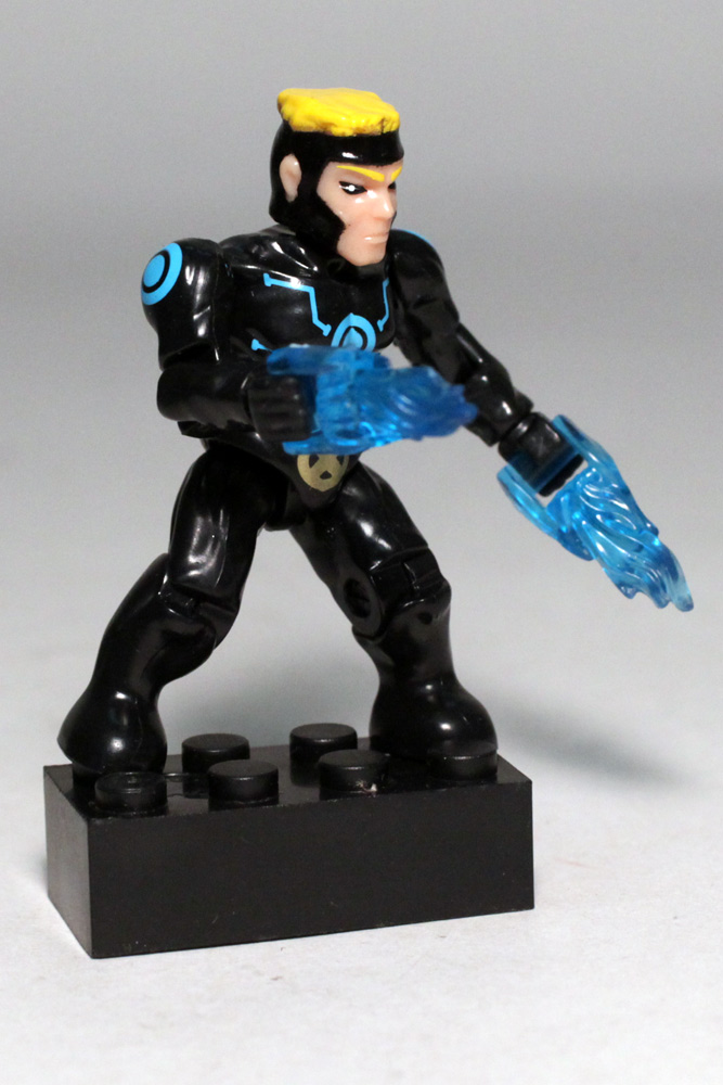 All figures come with a building block base to stand upon but there are also other accessories that are also included, depending on the character. Mr. Fantastic came with an machine that can snap onto the block. Iceman came with ice hands, as did Havok with energy blasts that snap into his hands. Magneto came with a removable cape that plugs into his back as well as a metal shielf of some sort.