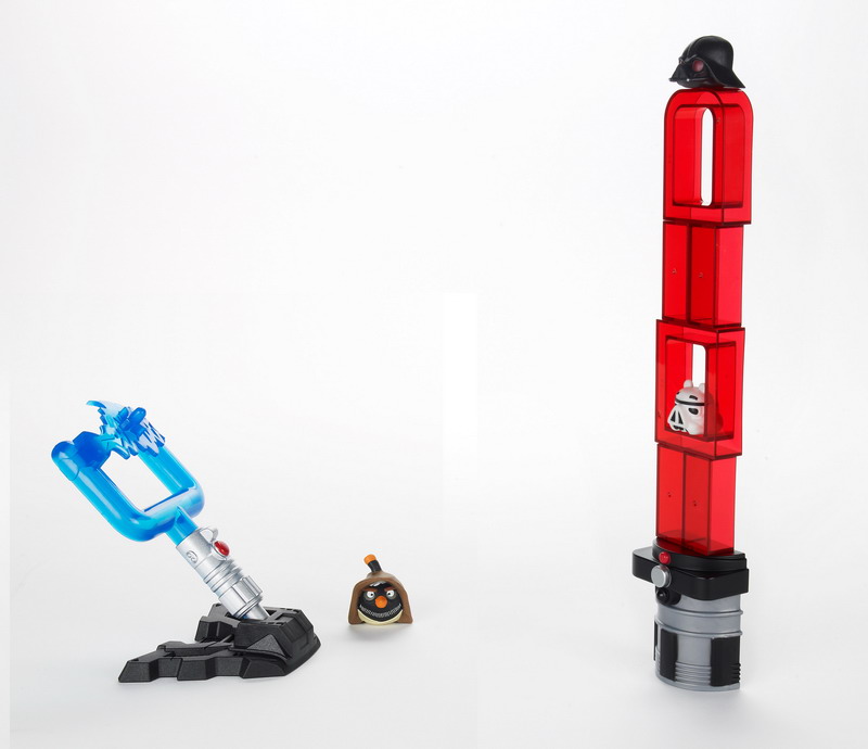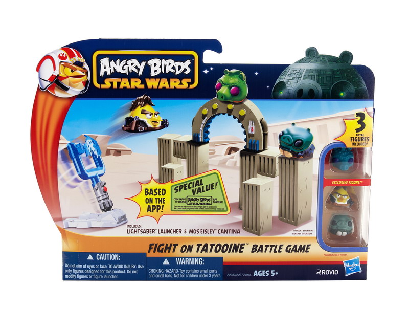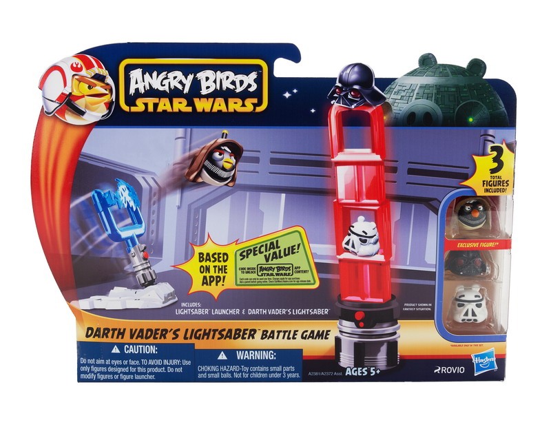 New from Hasbro – the ANGRY BIRDS STAR WARS app comes to life! The new line of Hasbro toys captures all the launching and destroying fun of the app in physical form and features your favorite STAR WARS characters re-imagined as high-flying ANGRY BIRDS and villainous pigs! Stack up signature STAR WARS structures and vehicles, then use your LIGHSTABER LAUNCHER to launch your ANGRY BIRDS and destroy them! Each battle game sold separately.