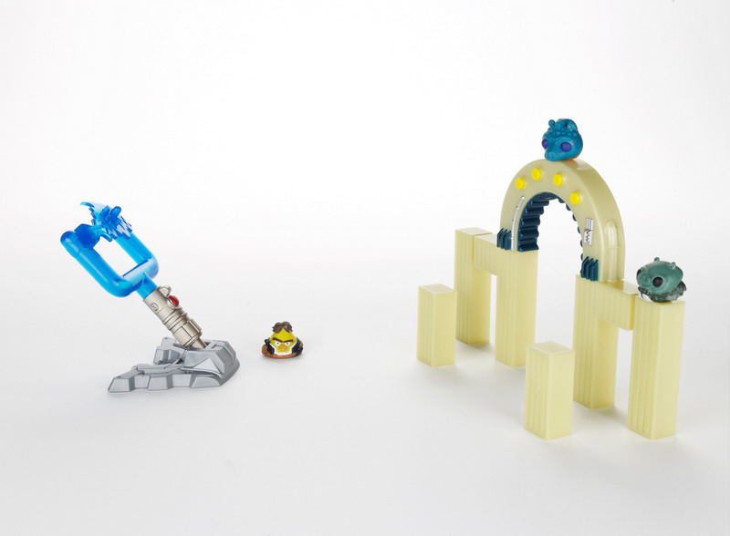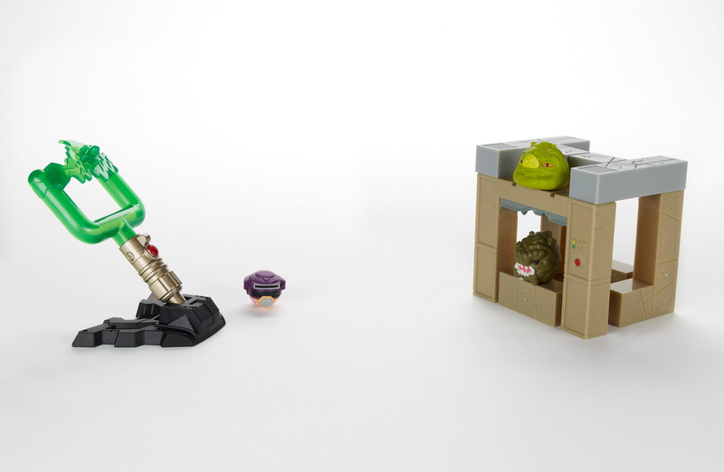 Stack, launch and destroy with these packs, which each feature three characters (one exclusive to the set), a LIGHTSABER LAUNCHER, and signature pieces to create an Imperial Pig structure for your ANGRY BIRDS to knock down. Choose from DARTH VADER’S LIGHTSABER, JABBA’S PALACE, and FIGHT ON TATOOINE. Players can also unlock ANGRY BIRDS STAR WARS content in-app with a special code in each pack. Approximate retail price: $14.99; Each sold separately.