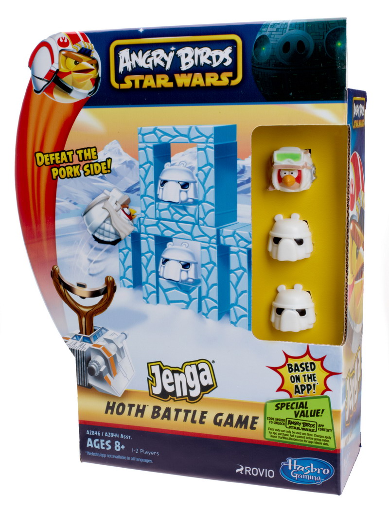 Hasbro will introduce the line with several new toys based on the ANGRY BIRDS STAR WARS property including the AT-AT ATTACK BATTLE GAME. The line will also feature new products based on a variety of existing Hasbro properties including the popular JENGA brand and the recently re-launched KOOSH brand, to introduce new play experiences featuring iconic STAR WARS characters re-imagined as high-flying ANGRY BIRDS and villainous pigs.