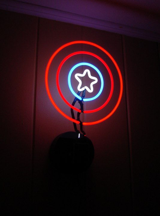 [HR][/HR]Currently available for ordering through your local comic shop, Diamond Select has three neon signs based on iconic images from the Marvel Universe -- Iron Man's mask, Captain America's shield and the famous classic Marvel logo. Each sign measures nearly a foot in diameter, and comes with a base for mounting on the wall or standing on any flat surface. Also still available is DST's popular Ghostbusters logo neon sign, with the same customizable base. Check them all out lit-up and in action in our photo gallery below.