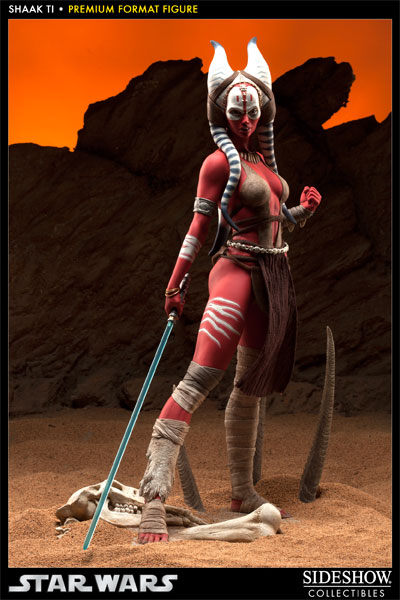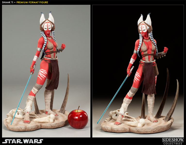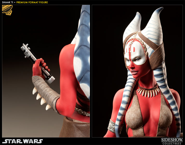 Next up in Sideshow's Star Wars Premium Format line is Shaak Ti, the female Togruta Jedi Master first seen in Star Wars Episode II: Attack of the Clones. The Sideshow Exclusive version will include an alternate hand holding Starkiller’s lightsaber (from her video game cameo in Force Unleashed). Both the standard and exclusive editions will be priced at $349.99 and will have payment plans available. Pre-orders start this Thursday, October 18th.
