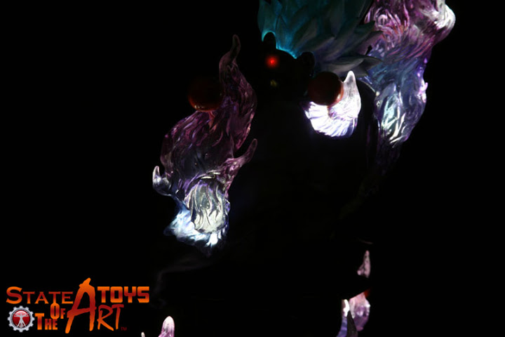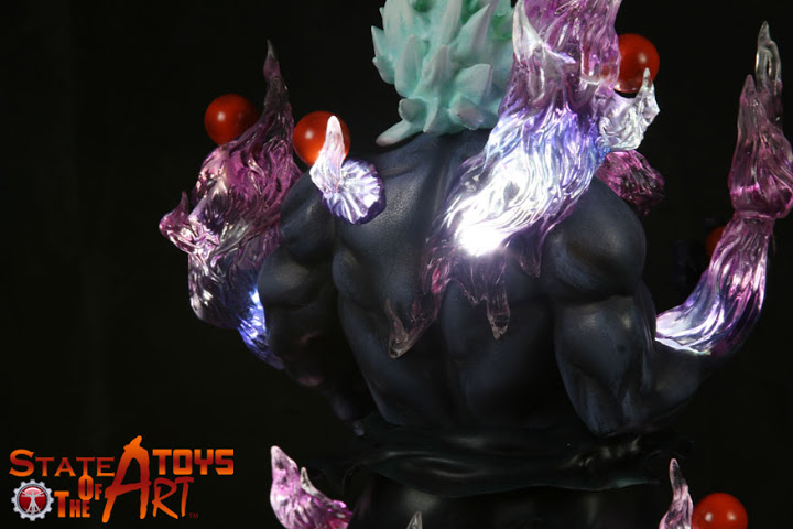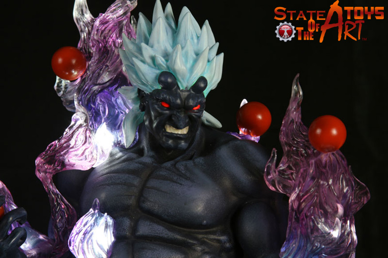 Standing at approximately 12-inches tall from head to base, the Oni statue is an impressive sight to behold. Surrounded by clear resin flames that illustrate Oni’s raging power, SOTA Toys has taken meticulous care to capture Oni’s illustrious dynamism from the Street Fighter videogame series.