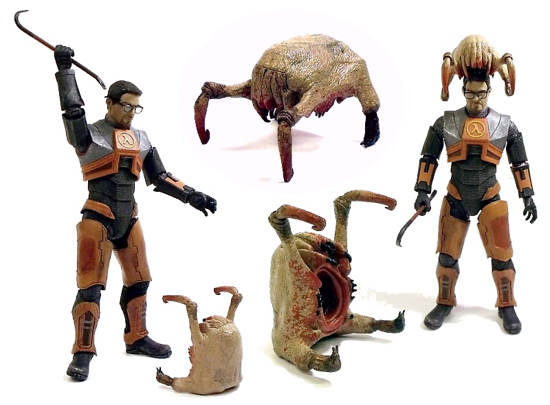 The Gordon figure is worth buying just for this awesome little critter - a defining creation of the Half-Life series. Heck, it's the first thing you fight... with your crowbar no less! Measuring two inches long, the headcrab menaces with a stellar sculpt and fantastic paint apps. Its front legs even pivot 360 degrees for some various poses. What's really fascinating is the deep cavity in the creature's mouth. In the game, the headcrab is responsible for turning hapless humans into zombies - headcrab zombies - with the beast clinging onto its host's head, becoming the head. With the hole so deep on the headcrab accessory, could a headcrab zombie be around the corner? It would be an incredible reuse. I'd also LOVE to see a bag of headcrabs offered. Just like four or five of the cool creatures sold by themselves.