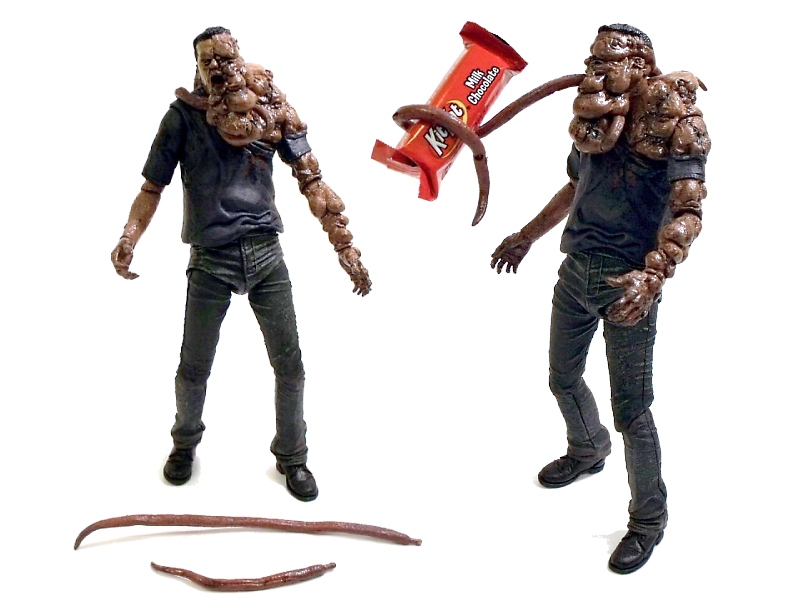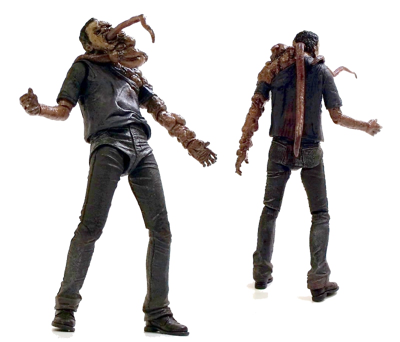 Where the Boomer was massive in girth, the Smoker towers in height - measuring a good 8 1/2 inches tall. Like the Gordon Freeman figure, the Smoker comes loaded with articulation. Zombie's moving like stiff corpses? Not in Left 4 Dead! There's a ball-jointed head, which is slightly limited due to it's boiled-over sculpt, but still allows for some great tongue-lashing poses. Also ball-jointed is the Smoker's shoulders, wrists, waist, thighs and feet. Swivel/ hinged elbows and knees round off the Smoker's impressive display of movement.