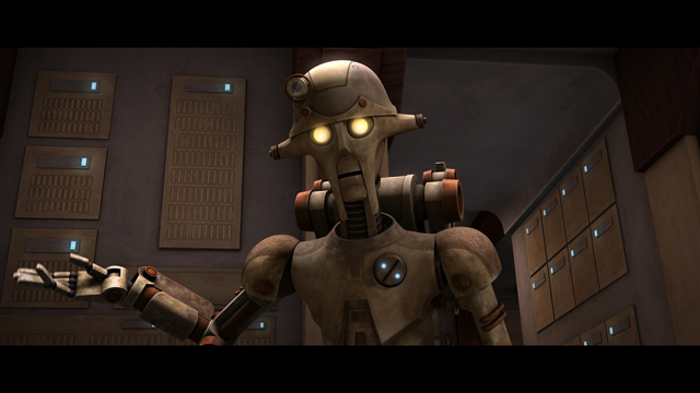 Most people around the world know David Tennant as the Tenth Doctor from Doctor Who, but now he's leaping into another terrific sci-fi franchise with an appearance on Star Wars: The Clone Wars! Don't miss this Saturday's (Nov. 10) new episode "A Test of Strength" on Cartoon Network. In it, Tennant voices the new character Huyang, a droid assisting the young Jedi we first saw last week in constructing their lightsabers. Huyang will continue to appear throughout the arc in the upcoming episodes "Bound for Rescue" and "A Necessary Strength."