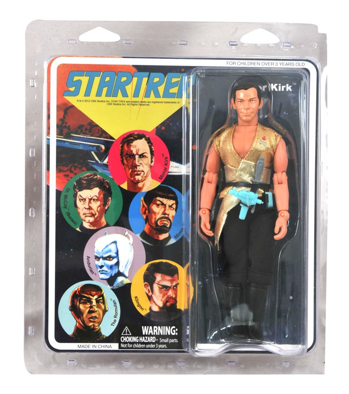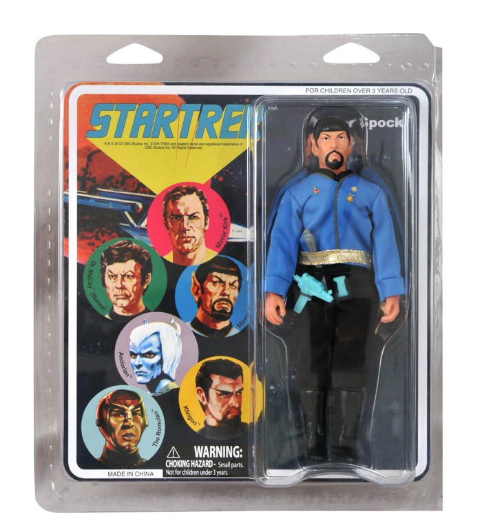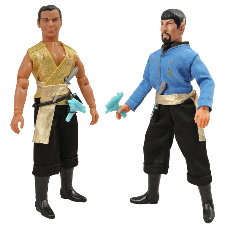 DST's line of classically styled 8" figures returns to Star Trek: The Original Series. This assortment depicts Kirk and Spock in their mirror-universe looks from the classic episode "Mirror, Mirror." Both feature real cloth costumes in the retro 1970s style, as well as episode-specific accessories and facial hair! Designed and Sculpted by EMCE Toys.