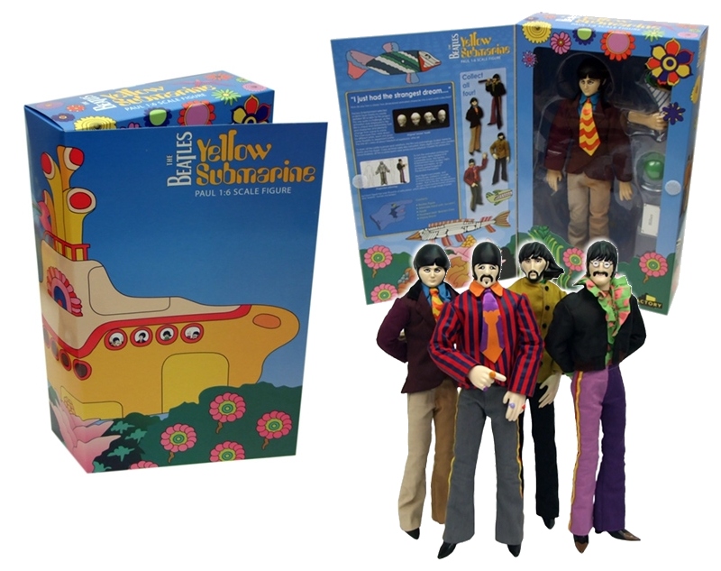 [HR][/HR]Factory Entertainment presents 1:6th scale action figures of The Beatles as they appeared in the iconic 1968 film, The Yellow Submarine. The 12-inch figure set - consisting of band members John, Paul, George and Ringo - features accurately styled fabric clothing and over 32 points of articulation per figure.