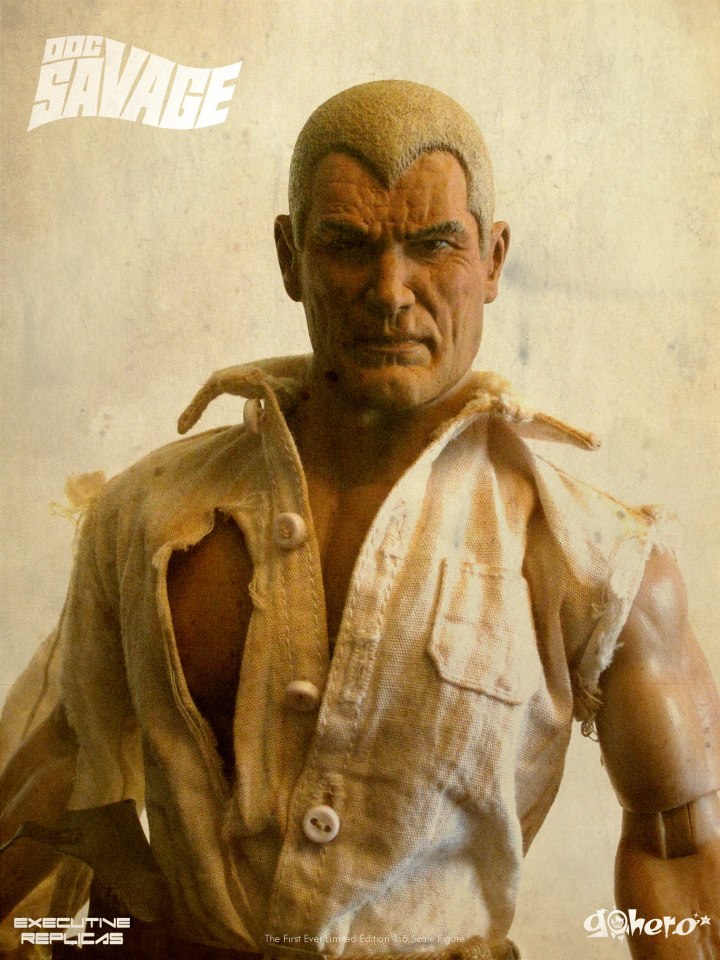 Go Hero has posted the first full prototype image of Doc Savage, their latest 1:6th scale action figure produced in conjunction with Executive Replicas. Full details are still to be announced, but Go Hero has stated that they are going all out on this figure, Doc Savage featuring metal and leather accessories, multiple guns, defined muscle body and more. Two head sculpts will also see release: his "Silver Age" look pictured above, as well as his "Golden Age" look first revealed in our story HERE. Go Hero is currently in discussions on a possible Doc Savage exclusive. If an exclusive deal pans out, the "Golden Age" look will be its head sculpt. If not, the standard figure will ship with two heads.