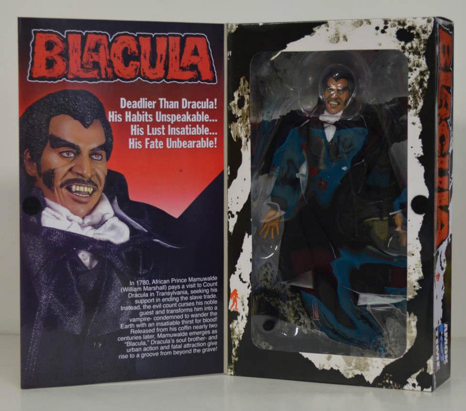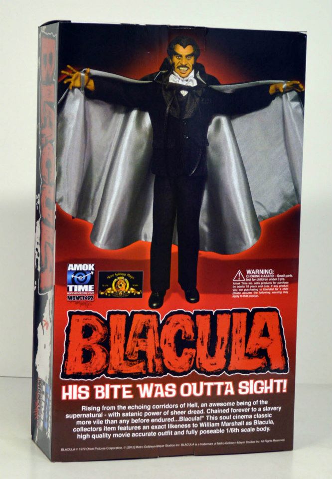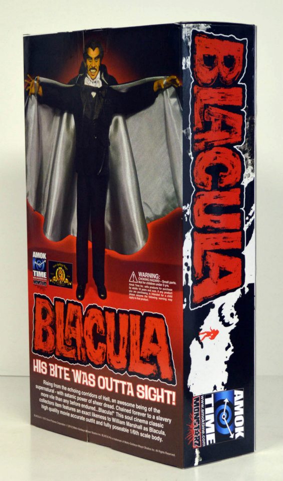 Amok Time has posted new photos showing off a production sample of BLACULA, their latest 1:6th scale Monstarz action figure. Based on the 1972 cult classic film that inspired a small wave of blaxploitation themed horror films, Blacula is scheduled to arrive this January limited to only 500 pieces and priced at a SRP of $79.99. The figure features a fully poseable body, a little more poseable then past Amok Time offerings, excellent likeness to William Marshall, finely tailored outfit, Blacula logo display base and beautiful display package. Keep an eye open for pre-orders at AmokTime.com.