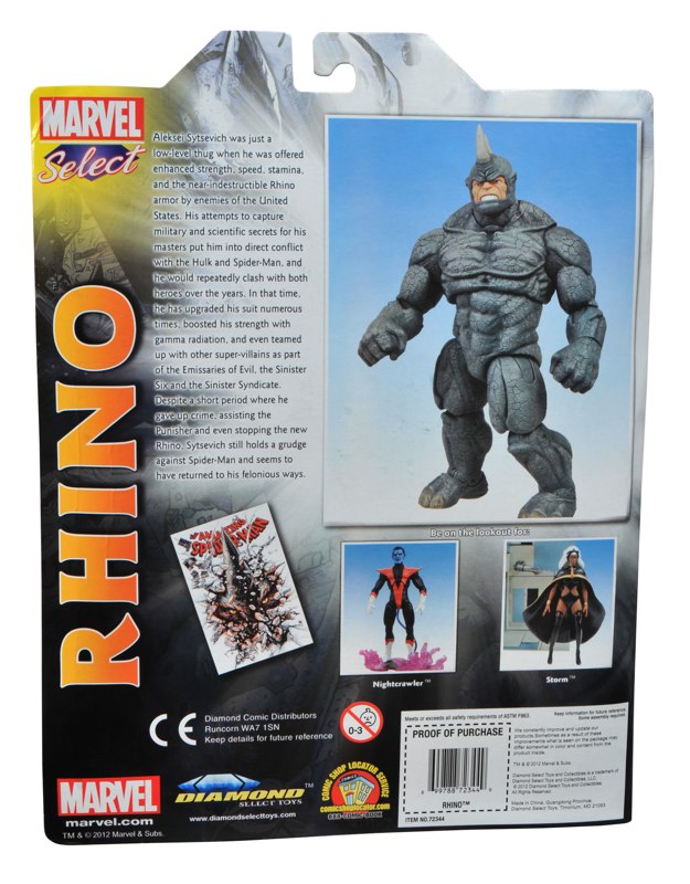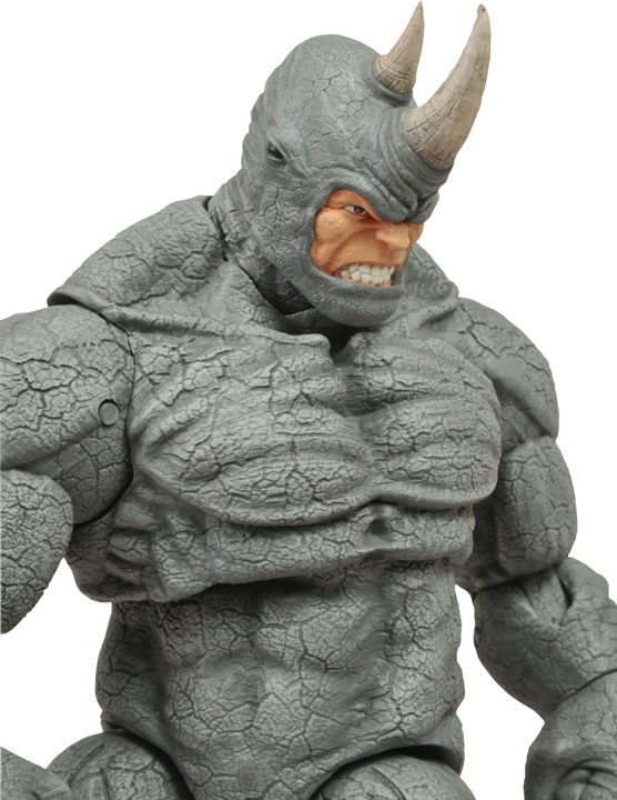 Watch out, Spider-Man fans: one of the web-slinger's pointiest and most unstoppable foes is heading your way! The leather-skinned Rhino will arrive in comic shops and specialty stores in January, packaged in Diamond Select's familiar Select-style packaging, suitable for shelf and wall display. Designed and sculpted by Gentle Giant, the Rhino nearly 8.5 inches tall with 16 points of articulation, and is ready to tear through your Marvel Select collection like tissue paper. Reserve one today at your local comic shop or your favorite online toy store, and look for him to hit stores in early 2013.